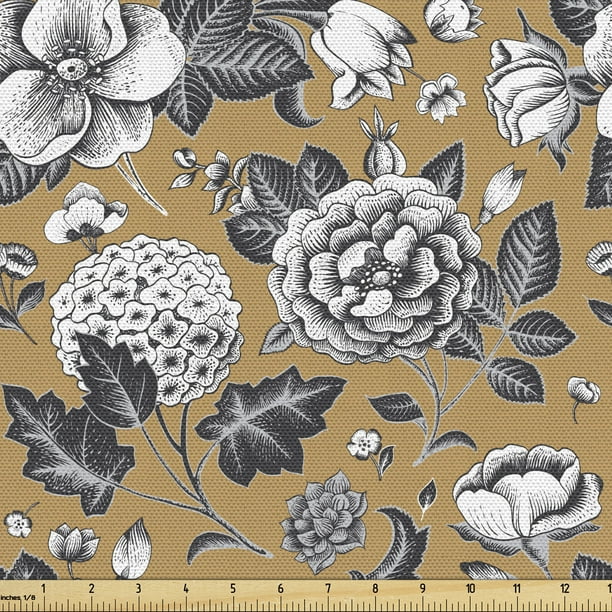 Floral Fabric By The Yard Vintage Composition Of Flowers And Leaves Romantic Art Dog Rose Pattern Decorative Upholstery Fabric For Chairs Home Accents Camel Dark Blue Grey By Ambesonne Walmart Com