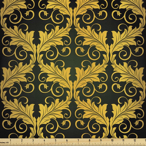 Yellow Damask Fabric By The Yard Renaissance Pattern Inspired Wave Shaped Leaves Decorative Upholstery Fabric For Sofas And Home Accents 3 Yards Dark Green Yellow By Ambesonne Walmart Com